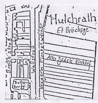 1900 legt die jüdische Gemeinde als Ersatz im „Hülchrather Feld" (heutige Jahnstrasse) den „Neuen jüdischen Friedhof" an