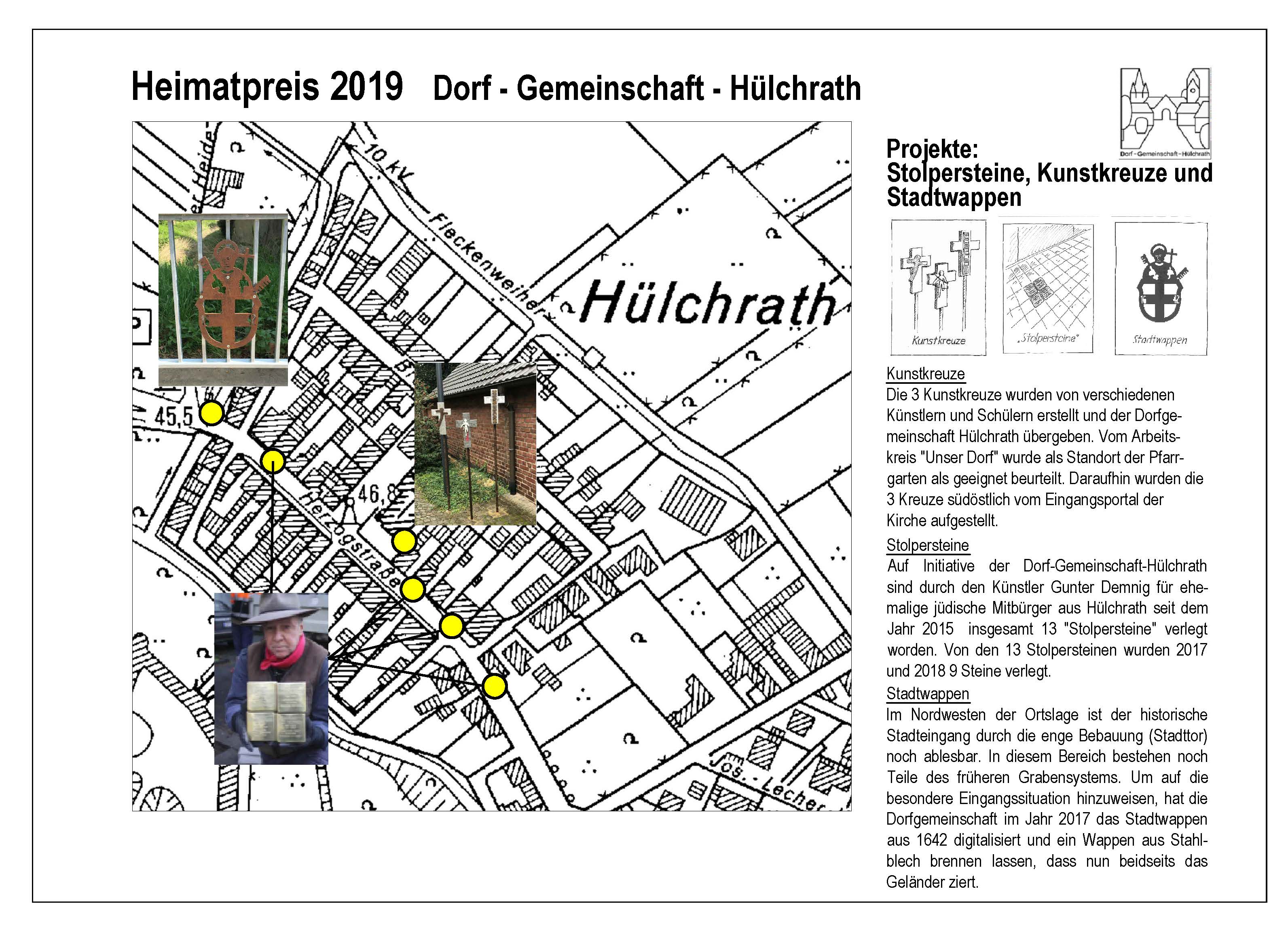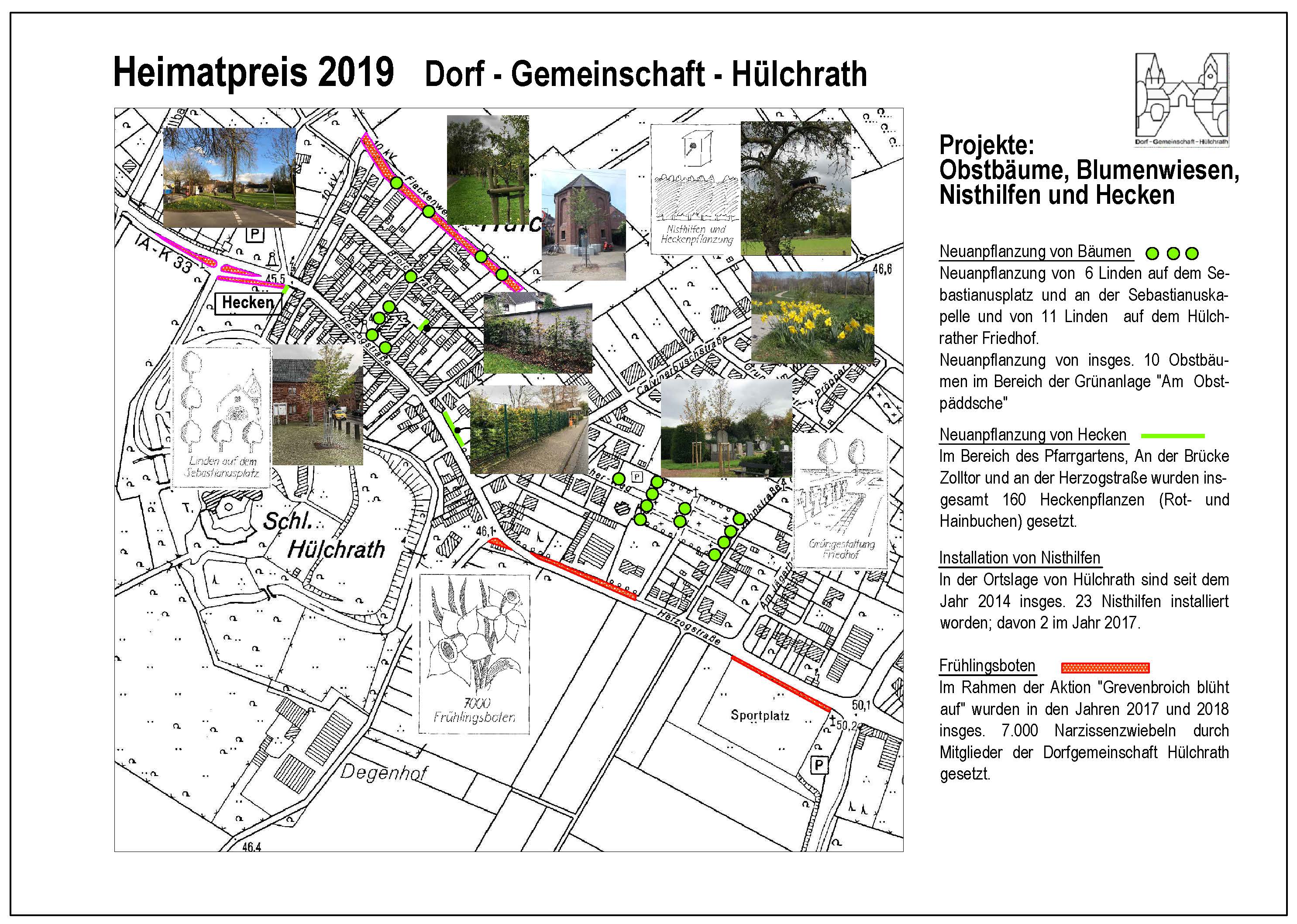 Die Dorf–Gemeinschaft–Hülchrath bewarb sich mit folgenden Projektbereichen zum Heimatpreis 2020: