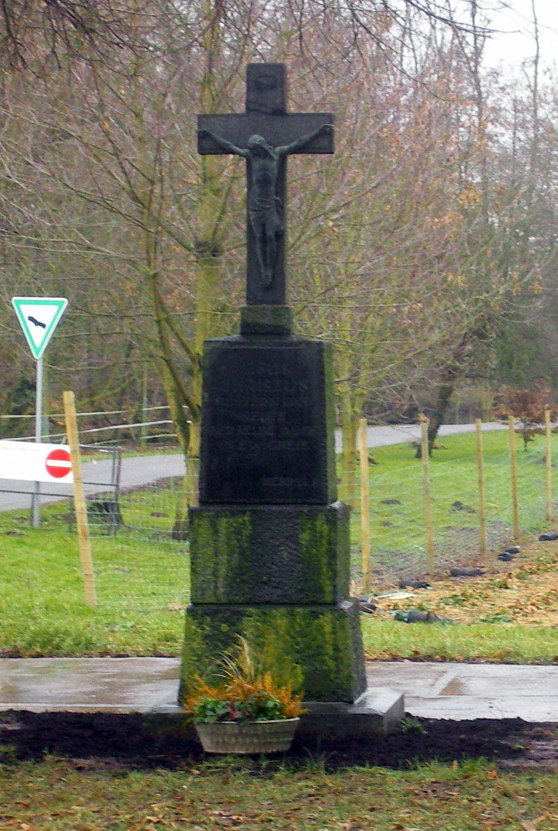 Nach dem 2. Weltkrieg wird das heutige Wegekreuz, als Ersatz für das durch einen Verkehrsunfall zerstörte ursprüngliche Wegekreuz, errichtet und in den 1970er Jahren an seinem heutigen Standort neu aufgestellt.