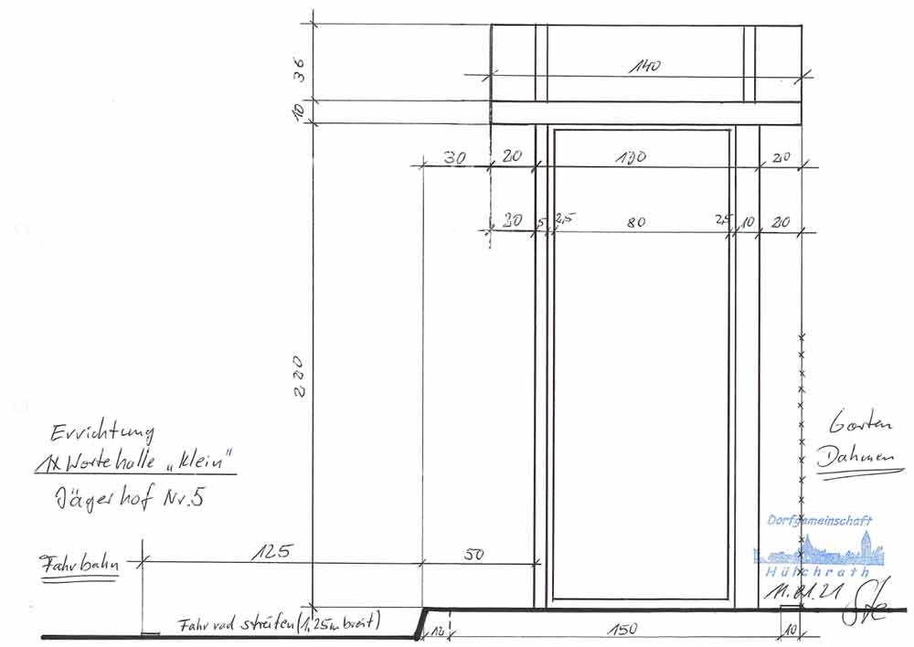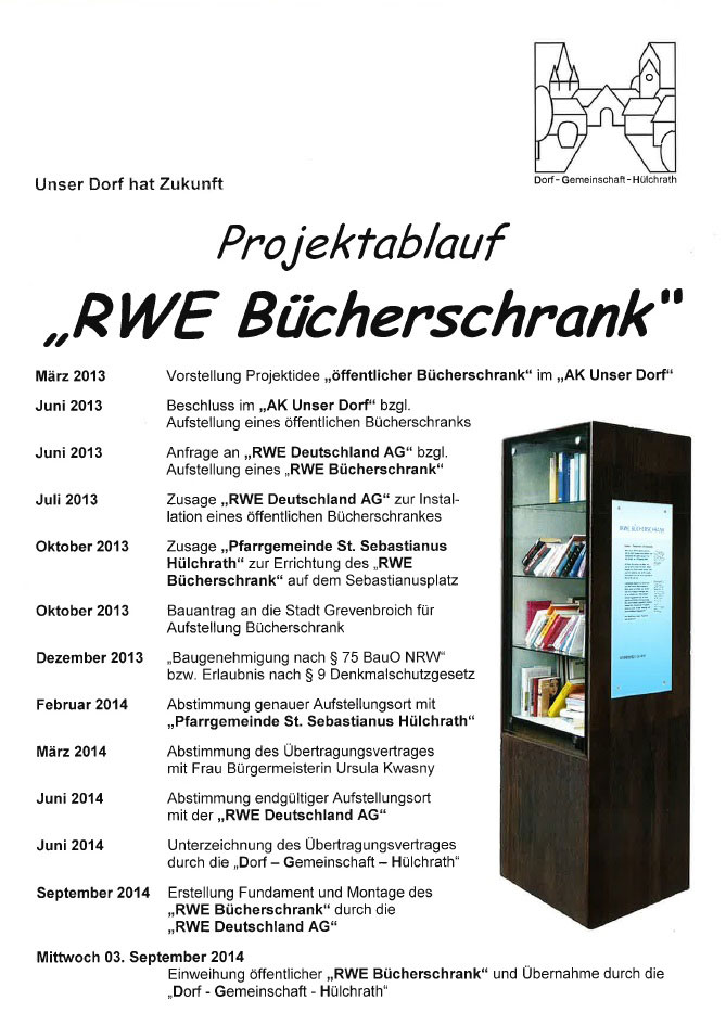 Z. Zt. liegt der schriftliche Antrag der „Dorf-Gemeinschaft- Hülchrath“ bei den Stadtbetriebe Grevenbroich AöR zur Prüfung und wir warten auf die endgültige Zustimmung zur Errichtung.