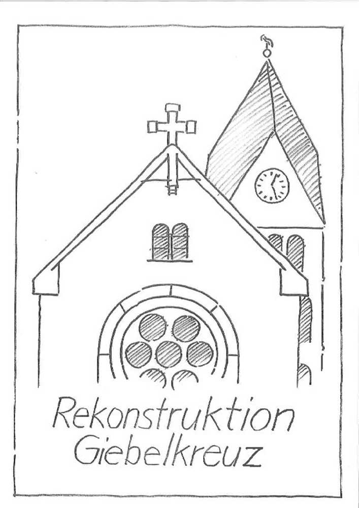 Entsprechend der vorliegenden Bauantragszeichnungen vom Juli 1910 verfügte unsere Sebastianuskirche seit der Errichtung im Jahr 1911/12 über zwei steinerne Kreuze auf den beiden Kirchenschiffgiebeln.