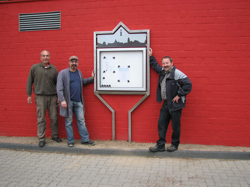 Für das Erstellen und die Montage der „INFO-TAFEL" (Vitrinenkasten, Rahmen aus Edelstahl und Beschilderung) sind keine Kosten angefallen, da diese in Form von Sachzuwendungen zur Verfügung gestellt wurden.