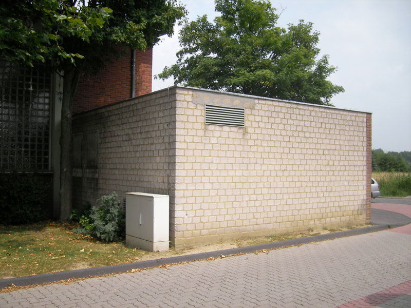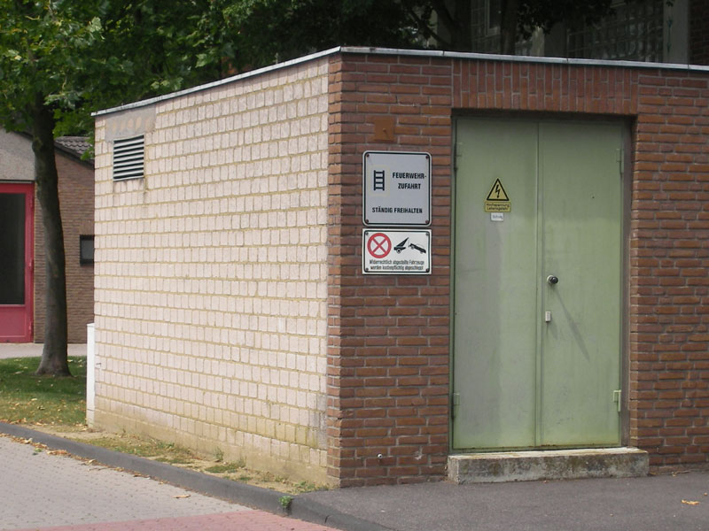 Als Aufstellungsort für die „INFO-TAFEL" wurde die Außenwand der Trafostation der RWE Rhein-Ruhr AG am Josef-Lecher-Weg festgelegt, da hier eine sehr große Anzahl von Kindern und Jugendlichen erreicht werden kann.