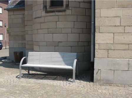 NEU MONTIERTE BANK: „Sebastianusplatz“, vor der Kirche