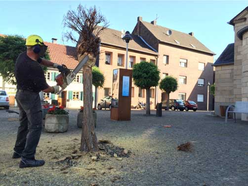 Eine der auf dem Sebastianusplatz vor der Pfarrkirche „St. Sebastianus“ seit Jahren stehende Akazien war, wohl infolge der trockenen Tage und Wochen in diesem Jahr, abgestorben.
