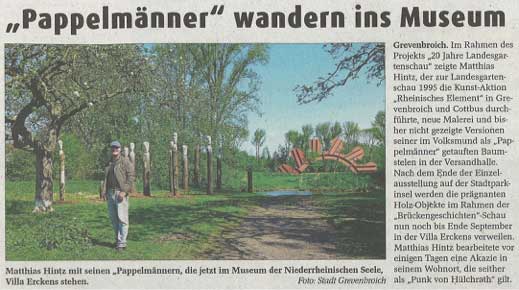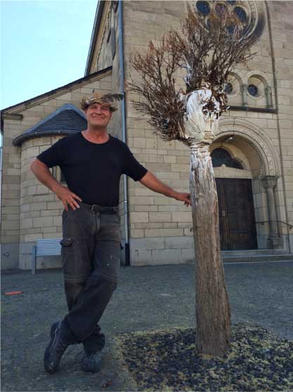 Wir konnten unseren ortsansässigen Künstler Matthias Hintz dafür gewinnen, im Rahmen seiner aktuell wieder aufgelegten „Pappelmann - Aktion", die Gelegenheit zu nutzen, um auch Hülchrath seinen eigenen, ganz besonderen „Pappel- bzw. Akazienmann“ zu spendieren.
