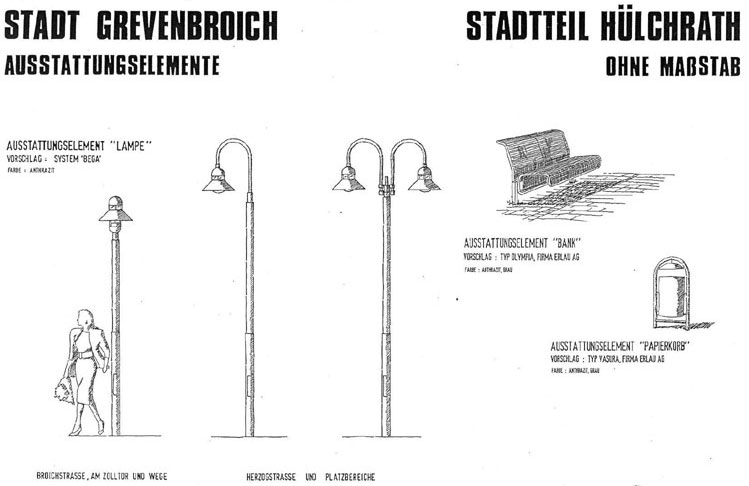 Das im Rahmen dieser Untersuchung vorgeschlagenen Ausstattungselement „Lampe" soll aufgrund des Votum der Mitglieder der „Dorfgemeinschaft Hülchrath" hier umgesetzt werden.