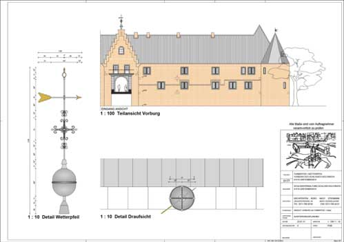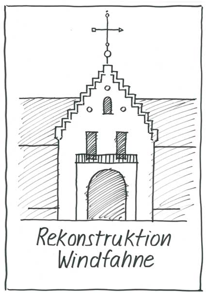Aufgrund von alten Fotos war überliefert, dass der Vorburgturm über eine Windfahne verfügte, die sich im Laufe der Zeit veränderte und seit Jahrzehnten ganz verschwunden war.