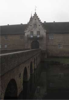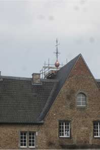 Nach jahrzehntelanger Abstinenz wurde wieder eine Windfahne auf dem Vorburgturm von Schloss Hülchrath errichtet.