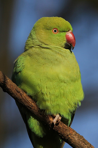 Und über eine Art ist noch zu berichten, die hier zugeflogen ist: der Halsbandsittich, eine Papageienart aus Indien, die sich über England, Holland und schließlich über die Rheinschiene verbreitet hat. Diese knatschgrünen Vögel sind reine Überlebenskünstler, der harte Winter hat sie nicht aufhalten können - und sie machen nun in der großen Platane vorm Schloß den Dohlen die angestammten Bruthöhlen streitig.